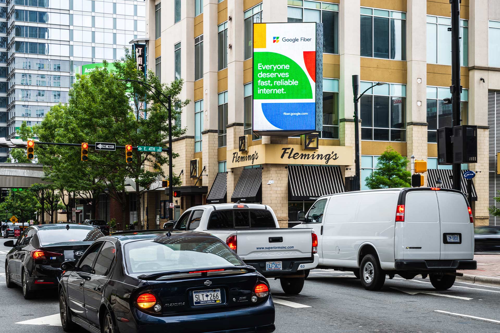 Uptown is Charlotte’s exciting urban core, where we offer the only large format out-of-home advertising. We completely redesigned the signage offering, resulting in the first new commercial signage in Center City in thirty years. We offer dynamic wallscapes and digital spectaculars on 4th Street, Trade Street, and College Street, as well as LED units, a digital rotary, and an interior courtyard domination, including a four-story elevator wrap, all close to the city’s main transit hub and the Spectrum Center, Charlotte’s largest concert venue and home of the NBA’s Charlotte Hornets.