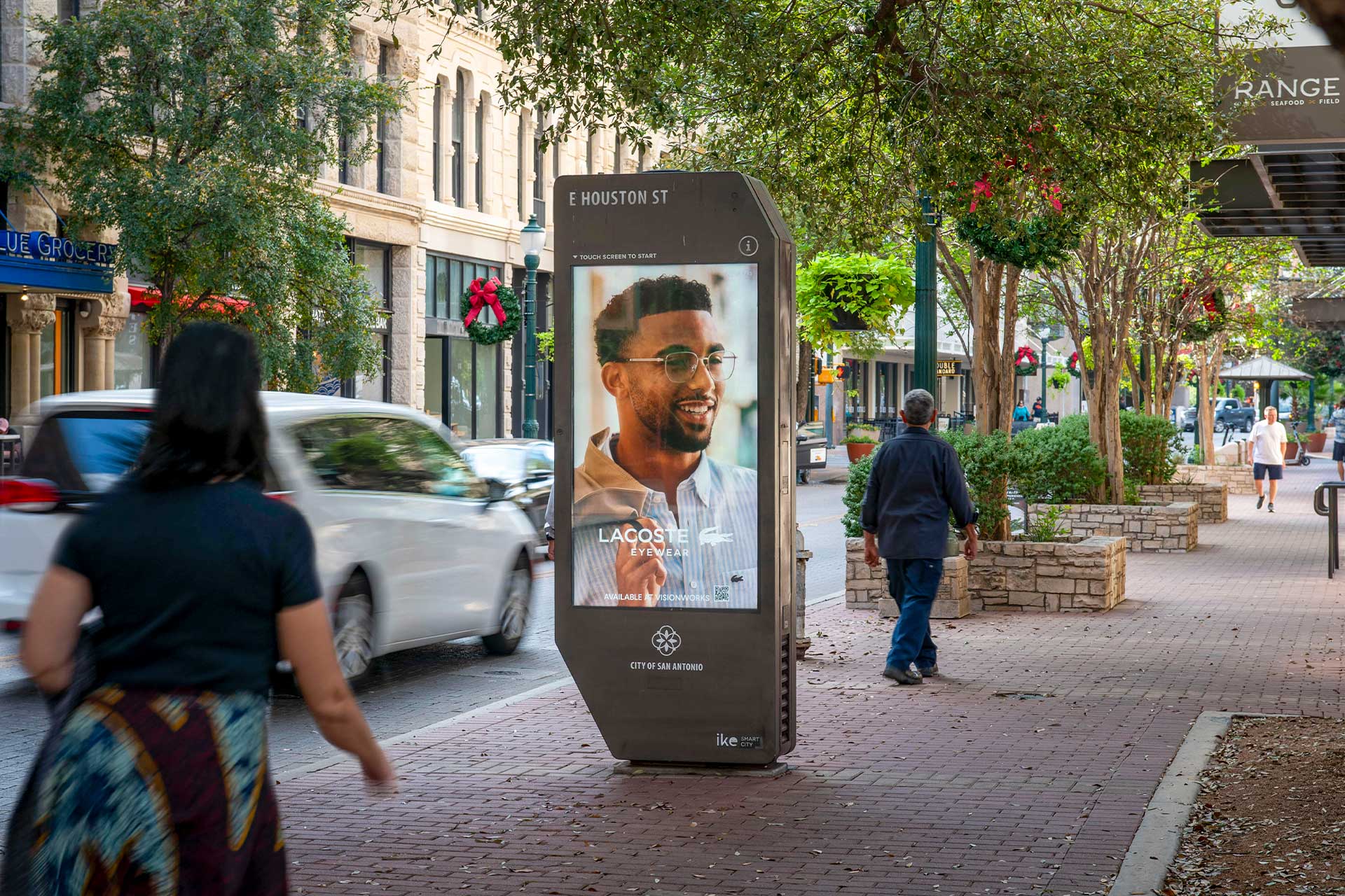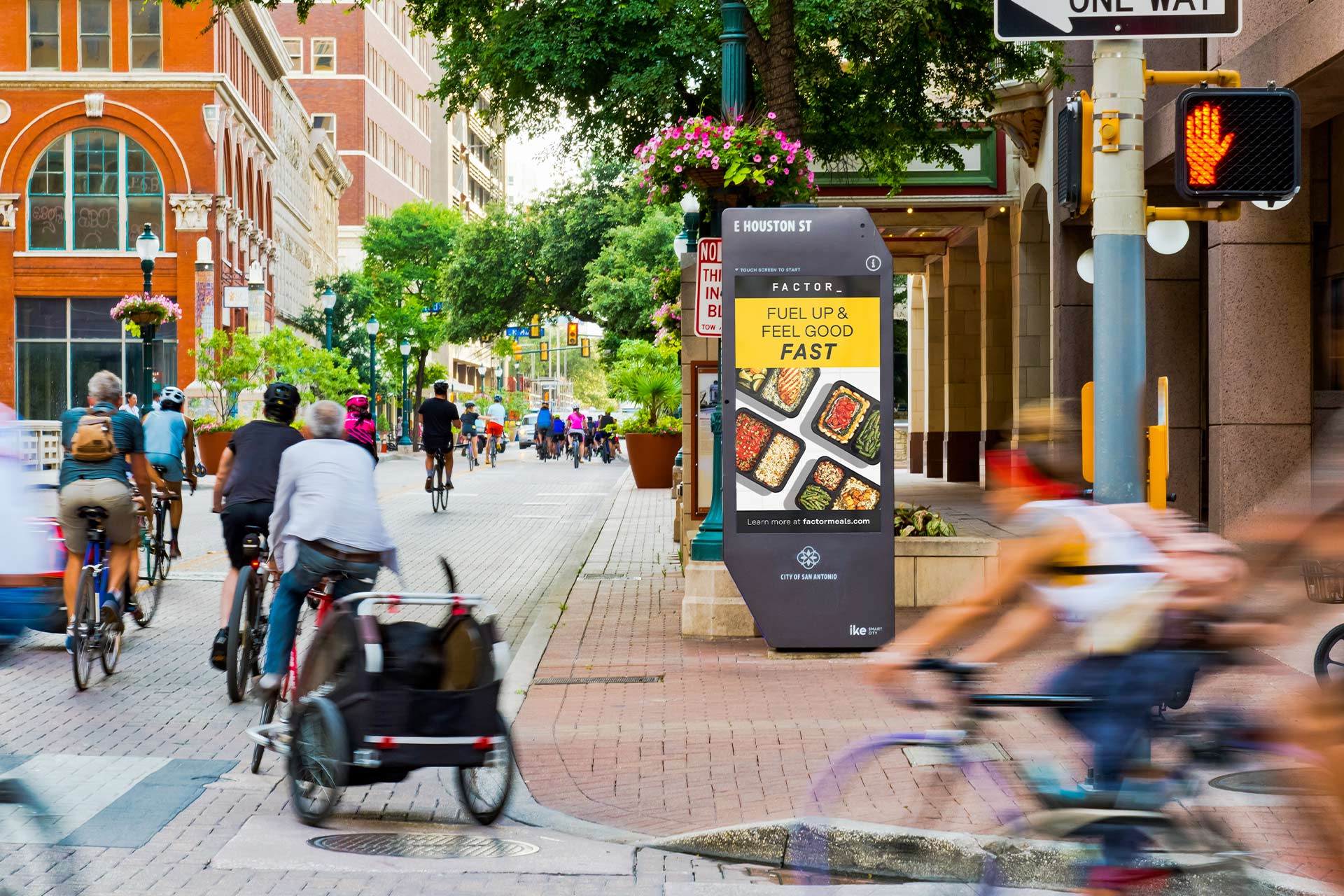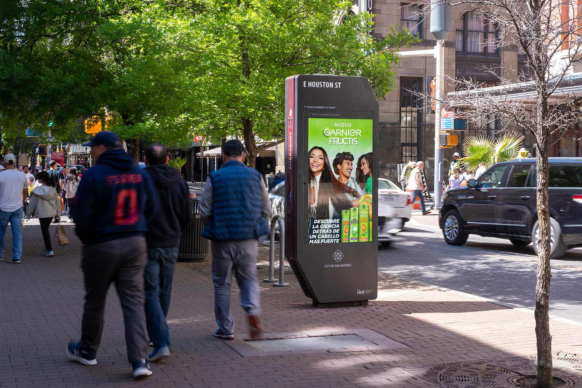 IKE interactive digital kiosks offer the only street-level advertising in Downtown San Antonio, greeting pedestrians in the bustling urban core at VIA transit stations, the airport, San Antonio River Walk, Henry B. González Convention Center, the Alamodome, and University of Texas at San Antonio.